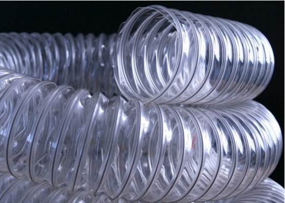 Полиуретановые шланги и воздуховоды изготавливается в широком диапазоне типоразмеров из прозрачного полиуретана толщиной 0,5 мм, армированные металлической спиралью.
